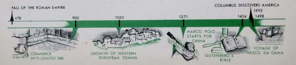 We use the date 1500 A. D. to bring to a close the long period of the Middle Ages. This does not mean that a sudden change had occurred overnight and that things had become “modern.” It does mean that the emergence of nations, the geographic discoveries, the establishment of universities with a greater interest in learning, the invention of printing with a greater dissemination of knowledge, combined with other factors to influence men’s minds. With the 1500’s, there appeared an almost explosive physical and mental energy among Europeans, that brought their culture to higher levels and carried their influence to the other continents of the world.