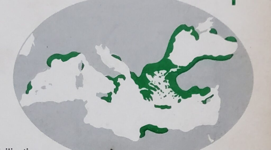As known, the lack of good farm land, the shortage of food and the abundance of waterways in the Aegean basin conspired to push the ancient Greeks into building ships and making a living through trade. In time, their trading ships sailed beyond the island-studded Aegean basin into the broad waters of the Mediterranean Sea.
