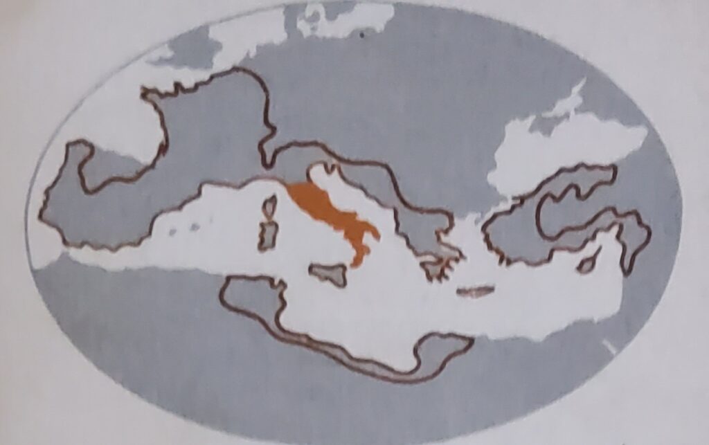Nature was responsible for that — at least after the first settlements were made on the Tiber River, some twenty miles inland from the sea. The toe of the Italian Peninsula and the island of Sicily, divided the Mediterranean Sea into two basins. The Tiber poured its waters into the western basin. Since Rome faced westward, its early contacts were in the western basin and it was not caught up in the current of Greek and Middle Eastern history, for several centuries.